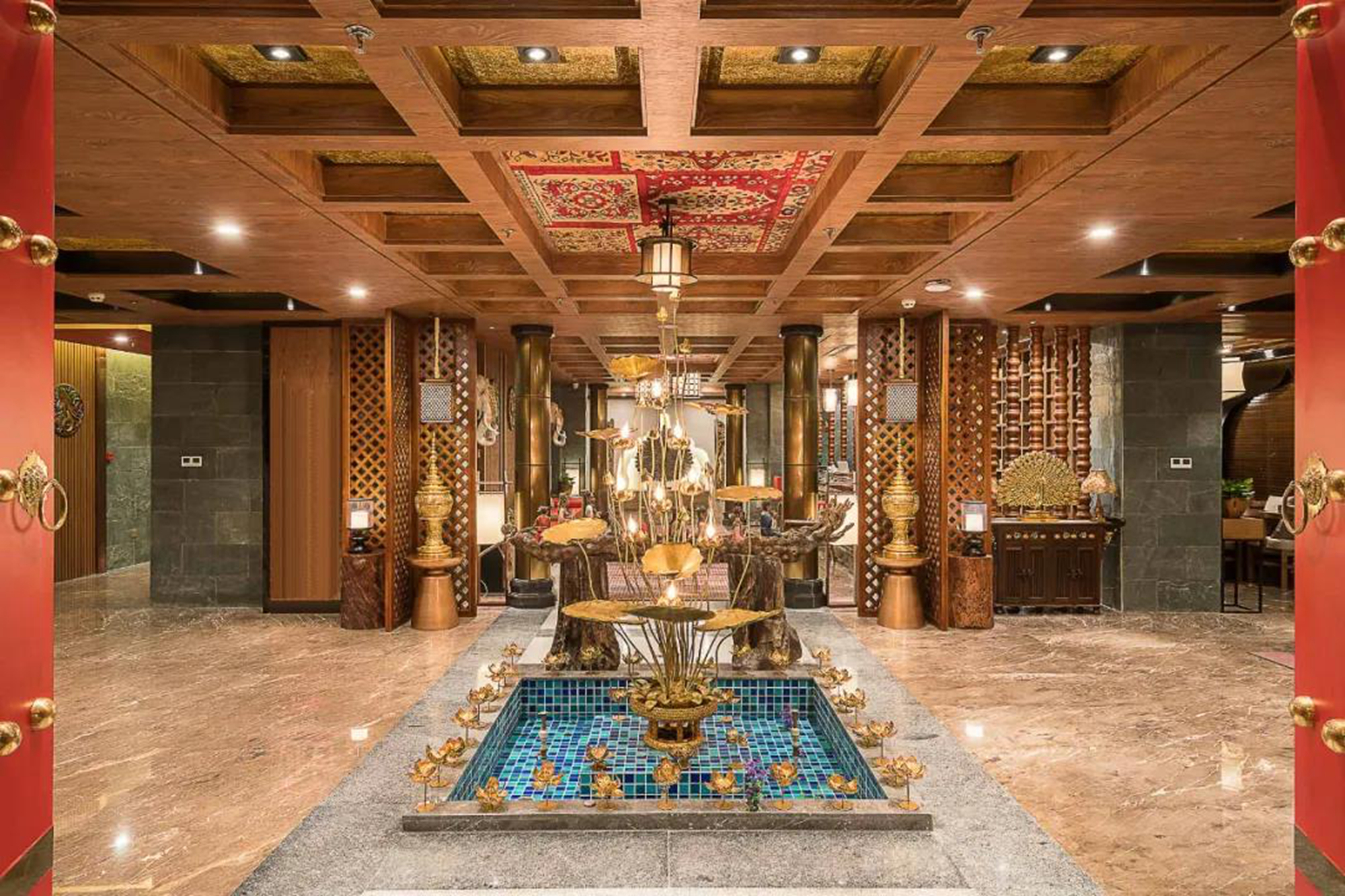 延續建筑脈絡的元素,運用動態流動的設計手法營造出層疊變換的“峽谷”形態,深淺不一的“盎然綠意”串聯起不同的場景,給予訪客“山川懷谷”般靈動的游玩體驗;將柔和的線條滲透于各空間,讓水之意向以抽象的方式回歸空間,行走于墻面,流淌于天花,似靜似動。