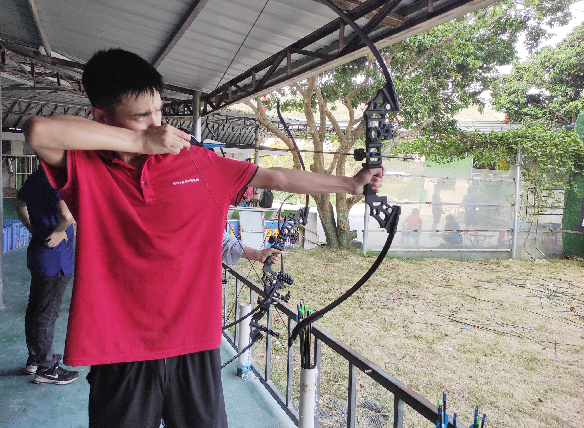 CS真人對戰(zhàn)之后,是距離CS基地10米遠處的射箭活動。蘇軾說,“會挽雕弓如滿月”,當真正接觸到箭之后,我們才明白,這如滿月的箭中包含了多少手臂肌肉中分泌的乳酸。