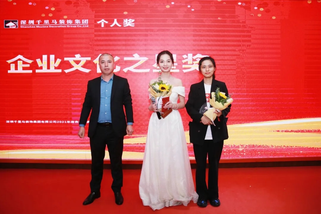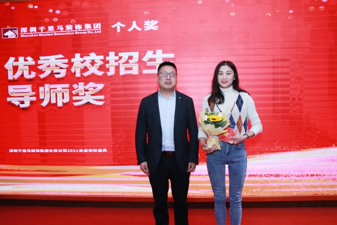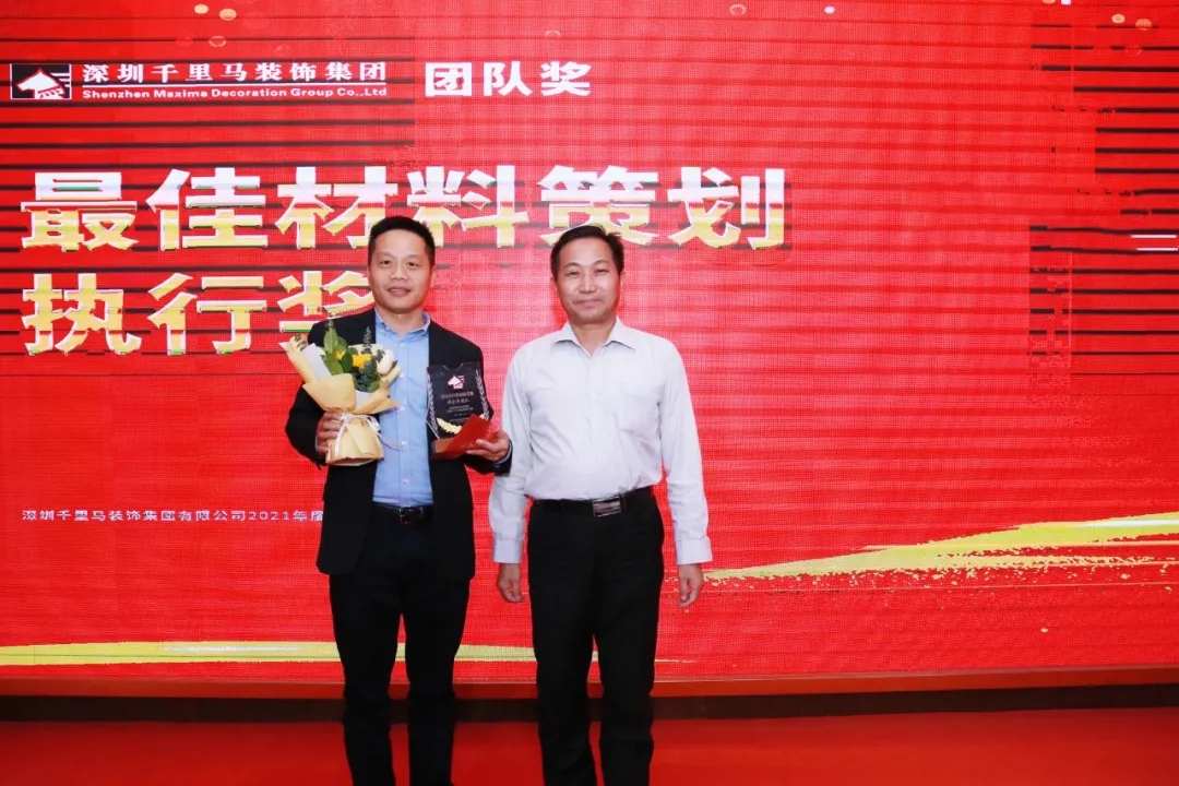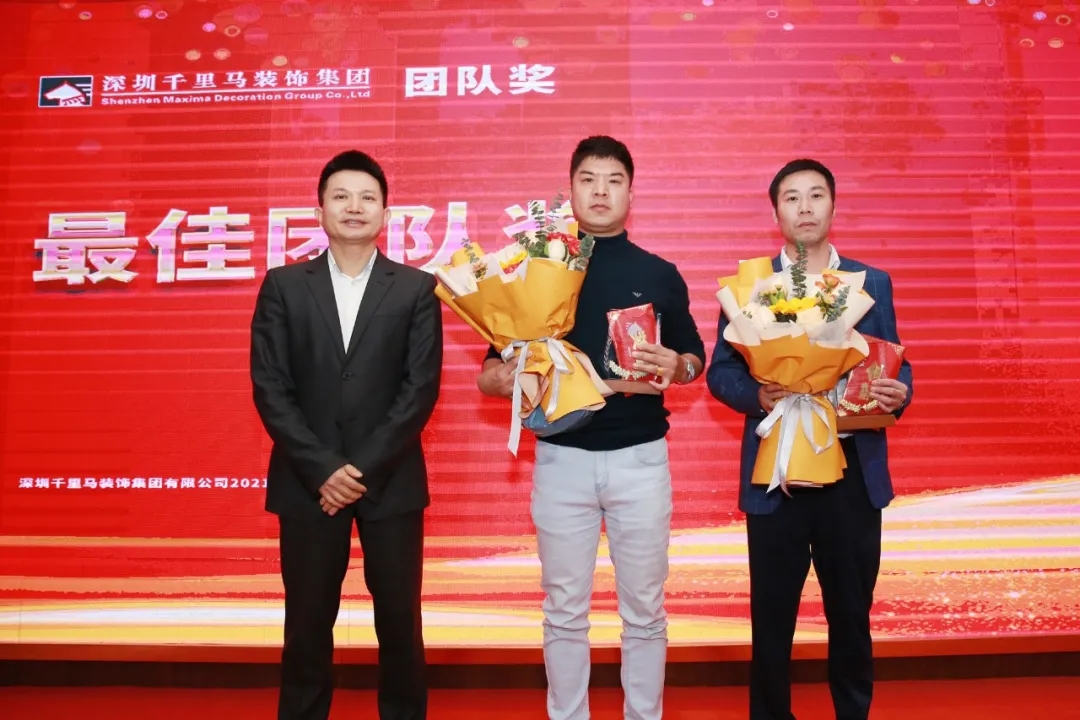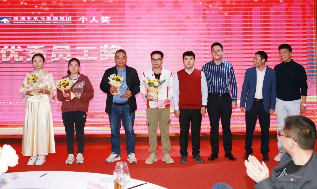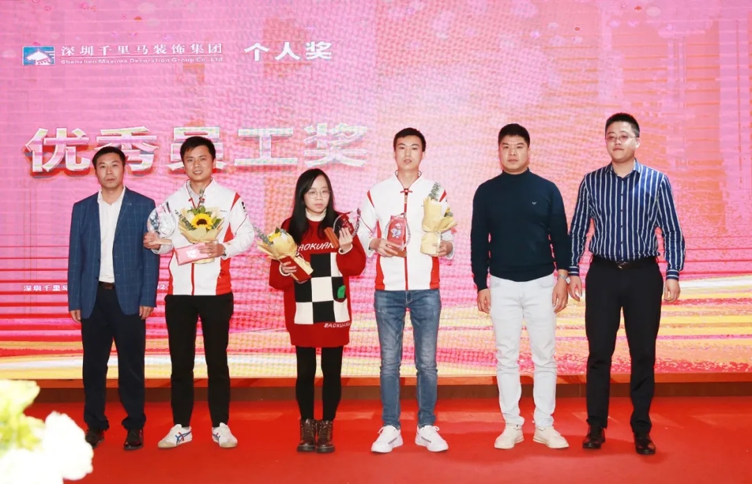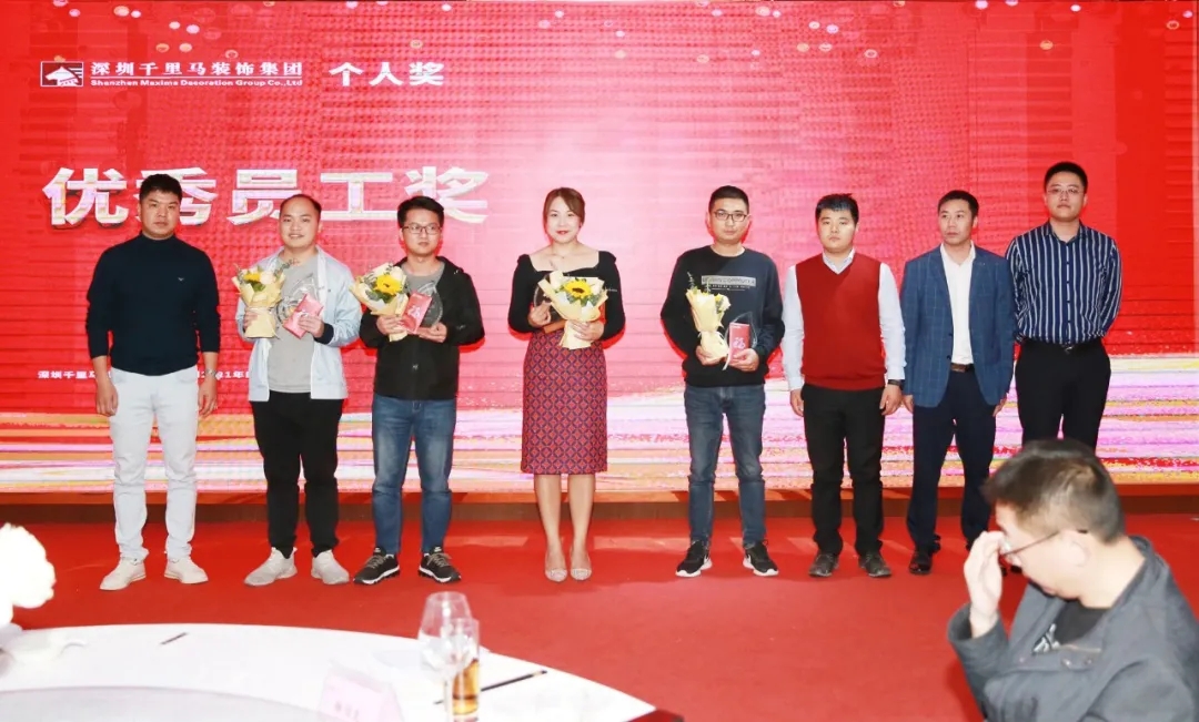 隨后,千里馬裝飾李向東董事長、李文學(xué)總經(jīng)理、朱建國副總經(jīng)理、丁利斌副總經(jīng)理等領(lǐng)導(dǎo)分別為2021年度優(yōu)秀團隊及個人進(jìn)行了表彰頒獎,這其中有公司的新人,也有見證公司歷程的元老,更有一批與公司長期同發(fā)展、共進(jìn)步的項目管理人員,現(xiàn)場全體人員為他們獻(xiàn)上了最熱烈的掌聲,感謝他們?yōu)楣緞?chuàng)造的卓越成績,鼓勵他們?yōu)楣咀龀龈筘暙I(xiàn)。