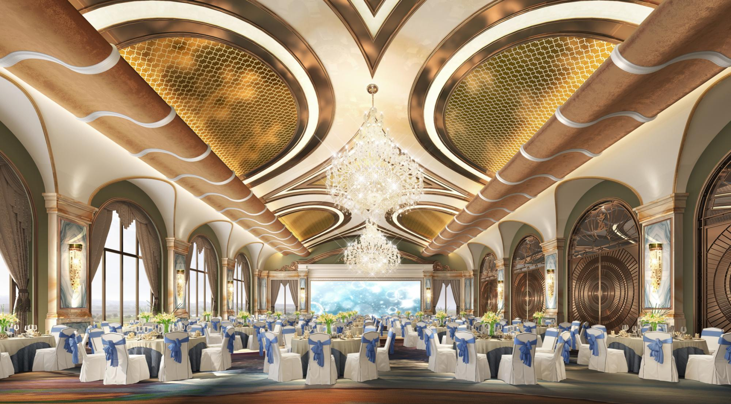 霸州國際酒店為五星級(jí)豪華溫泉酒店,酒店為新古典設(shè)計(jì)風(fēng)格,沒有復(fù)雜的功能分割,整體設(shè)計(jì)氛圍營造出一種舒適、奢華的空間感受,酒店的設(shè)計(jì)思想是來源于對(duì)宮殿城堡的喜愛和無限幻想,把現(xiàn)代風(fēng)格和異域文化風(fēng)格結(jié)合起來。整個(gè)空間色彩豐富,襯托高品位的家具、燈具及藝術(shù)品陳設(shè),結(jié)合突出的立體感和節(jié)奏感,烘托出酒店高雅的文化氛圍。